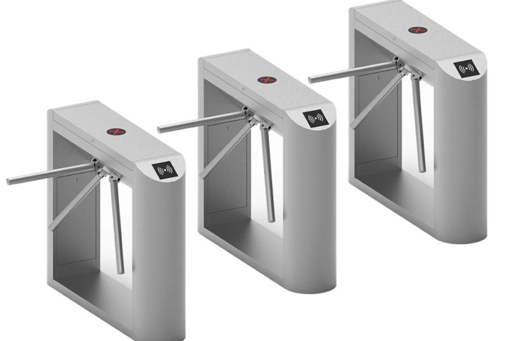 Compact tripod turnstiles designed for efficient pedestrian access control with durable stainless steel construction.