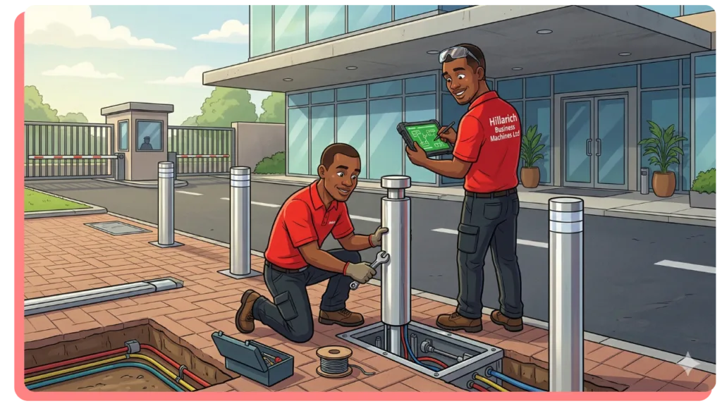Hillarich Business Machines Ltd provides professional automatic bollards installation services in Lagos for corporate buildings, government facilities, commercial complexes, hotels, banks, and high-security locations.