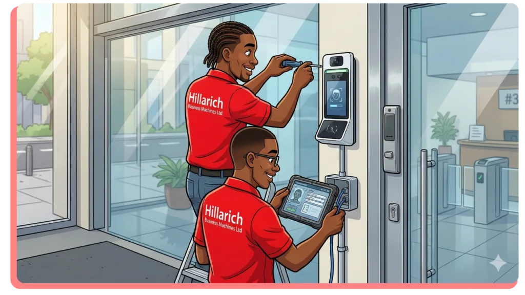 Hillarich Business Machines Ltd provides professional face scanner access control installation services in Lagos for corporate offices, commercial buildings, schools, hospitals, banks, and residential estates.