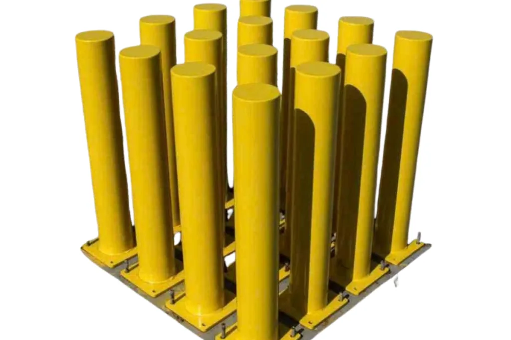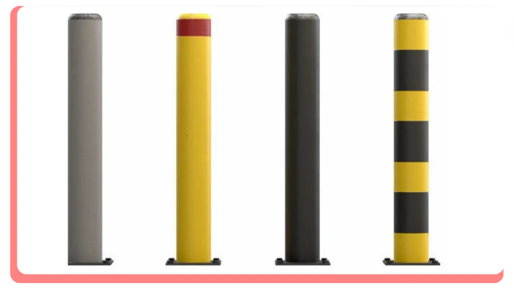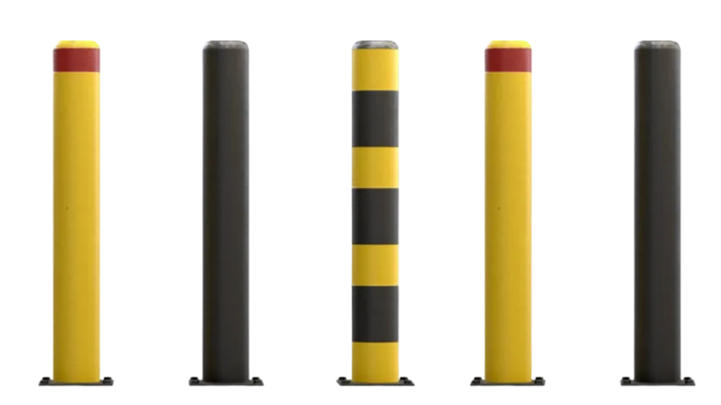 Heavy-duty bollards designed for warehouses, factories, and industrial facilities.