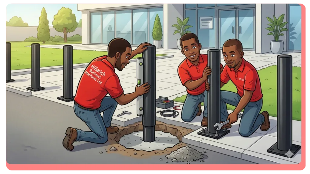 Hillarich Business Machines Ltd provides professional fixed bollard installation services in Lagos for commercial buildings, government facilities, industrial complexes, hotels, and schools.