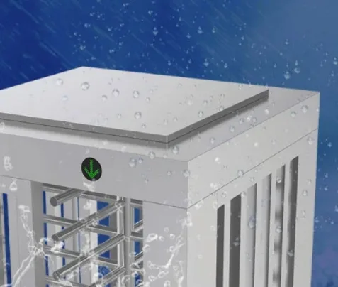 HR401FS full height turnstile added a canopy to protect the body from inclement weather and to prevent persons from climbing over for unauthorized entry.