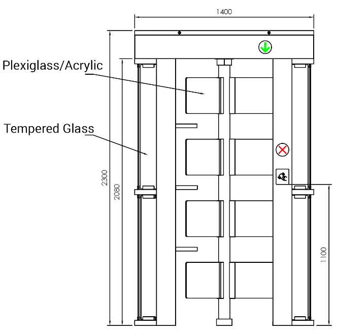 • Anti-tailgating function: only one person passes at one time.