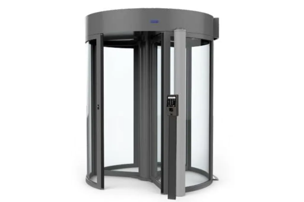 High-security revolving doors integrated with access control systems for controlled building entry.